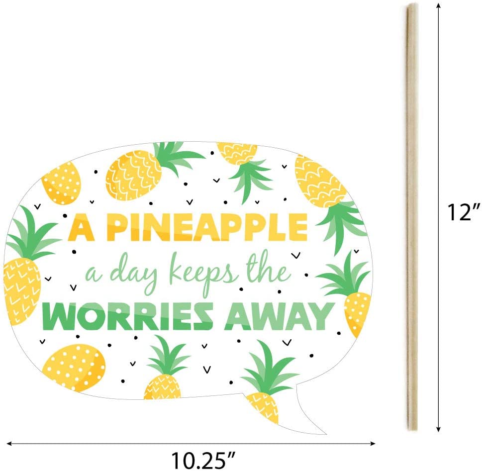 高品质派对用品:热带菠萝拍照亭道具采用专业印制的厚卡纸。它们已裁剪好,可直接使用随附的木钉和贴纸进行组装。