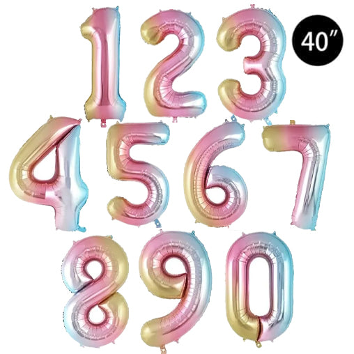 大型40英寸数字气球 - 彩虹渐变色 - 含氦气