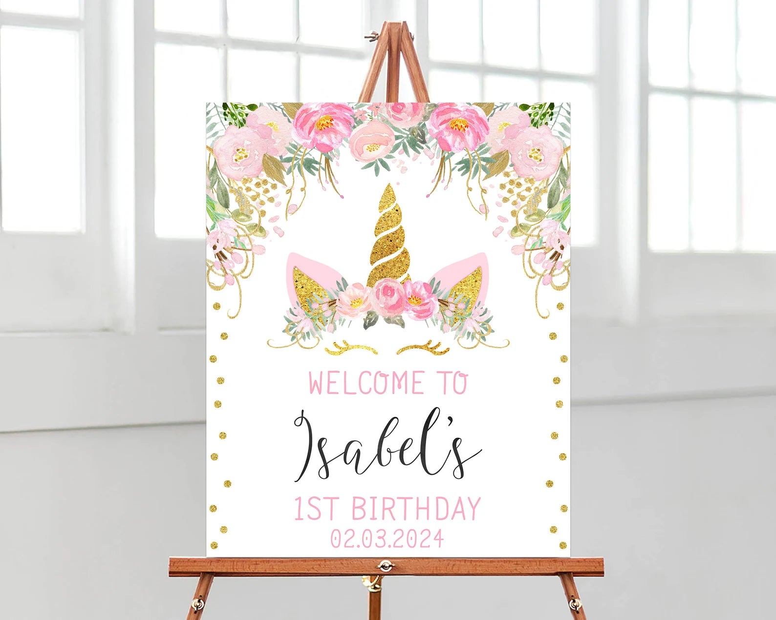 独角兽 - 欢迎标牌 - 泡沫板 3x2 英尺 - 自定义名称和年龄