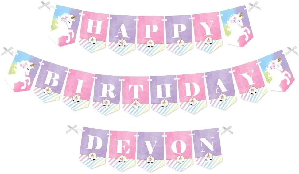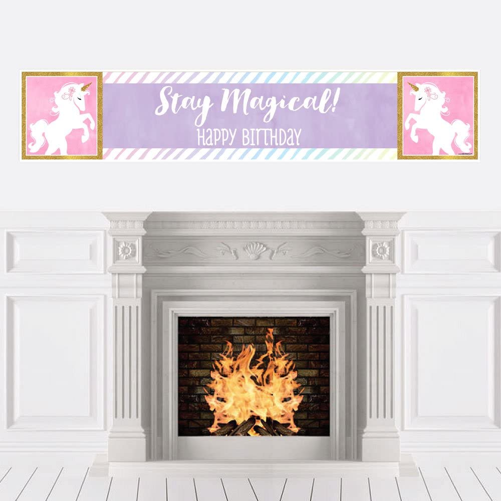 彩虹独角兽 - 神奇独角兽生日快乐装饰派对横幅