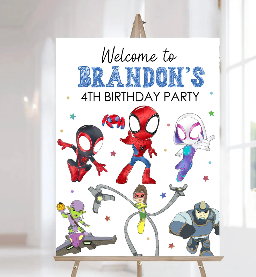 蜘蛛侠和他的神奇朋友们 - 欢迎标语 - 泡沫板 3x2 英尺 - 自定义姓名和年龄 已缺货,一旦有货就会发货。