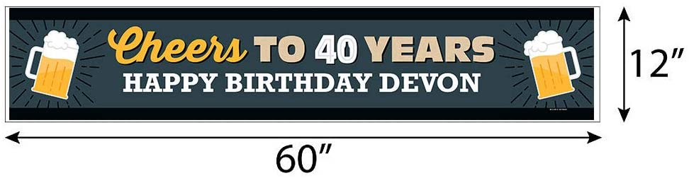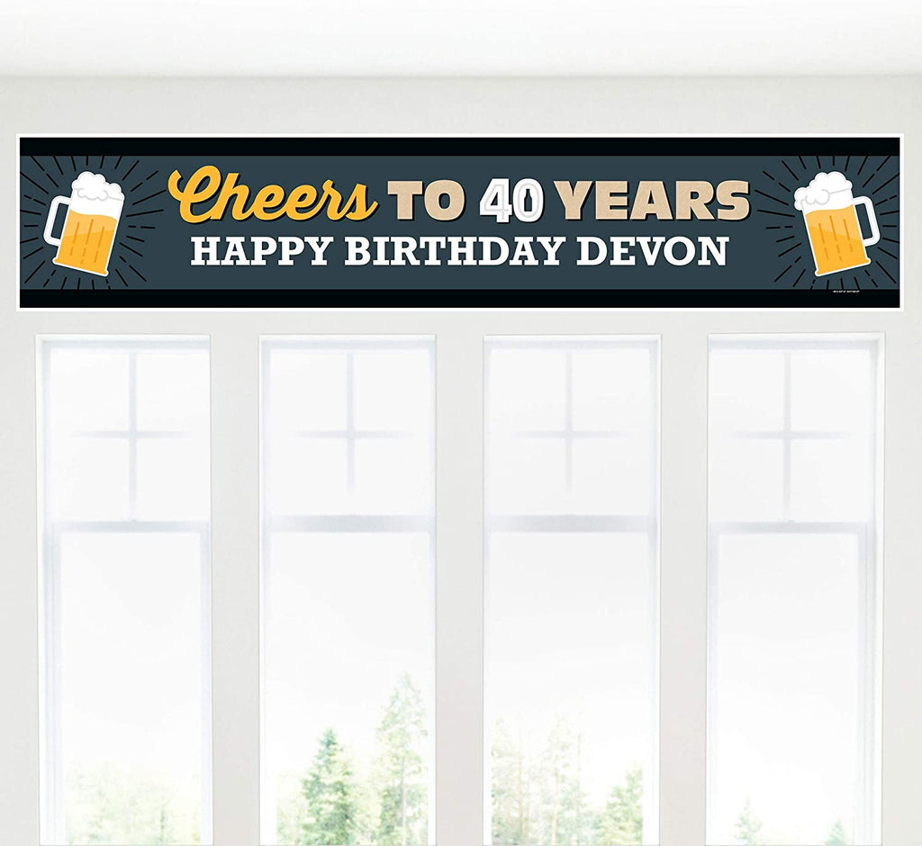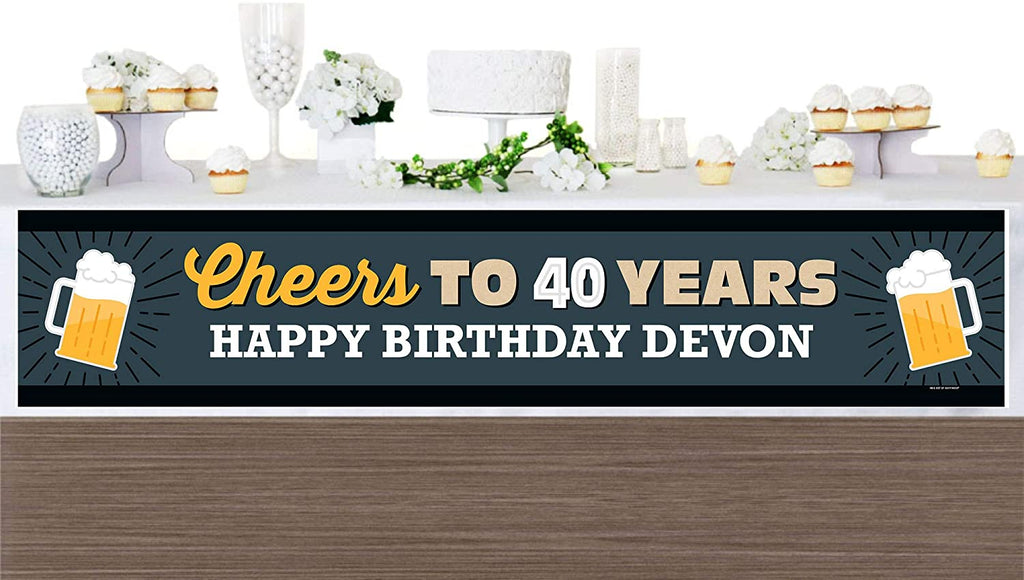 个性化欢呼和啤酒庆祝 40 岁生日 - 定制 40 岁生日派对装饰派对横幅
