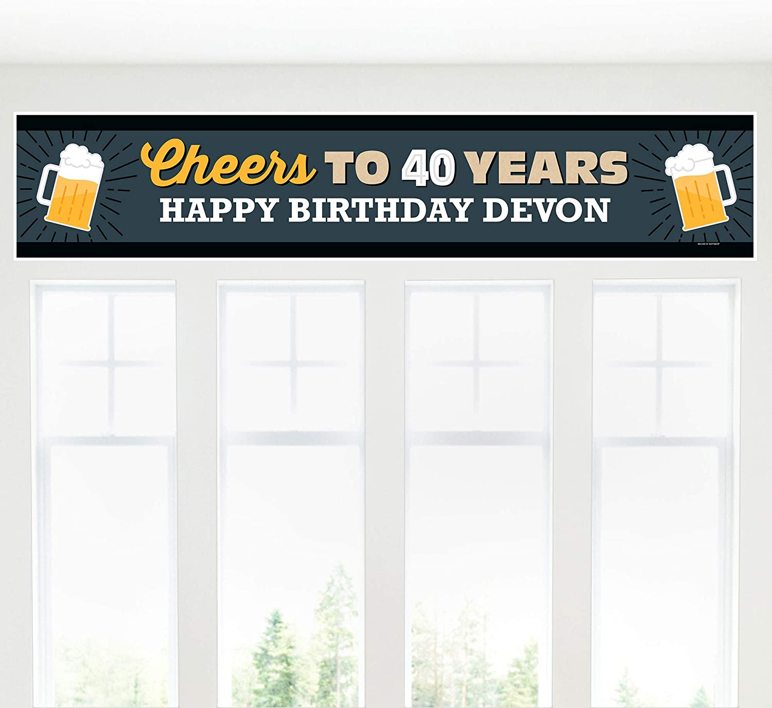 高级定制派对用品:40岁生日派对横幅,以“欢呼喝啤酒”为主题,印上您的个性化文字,并由专业人员印制在光彩照人的高级缎面纸上。每条定制横幅均经过单独检查,手工精心包装,并卷入保护套中。所有个性化派对横幅均包含无痕粘性壁挂支架,方便展示。