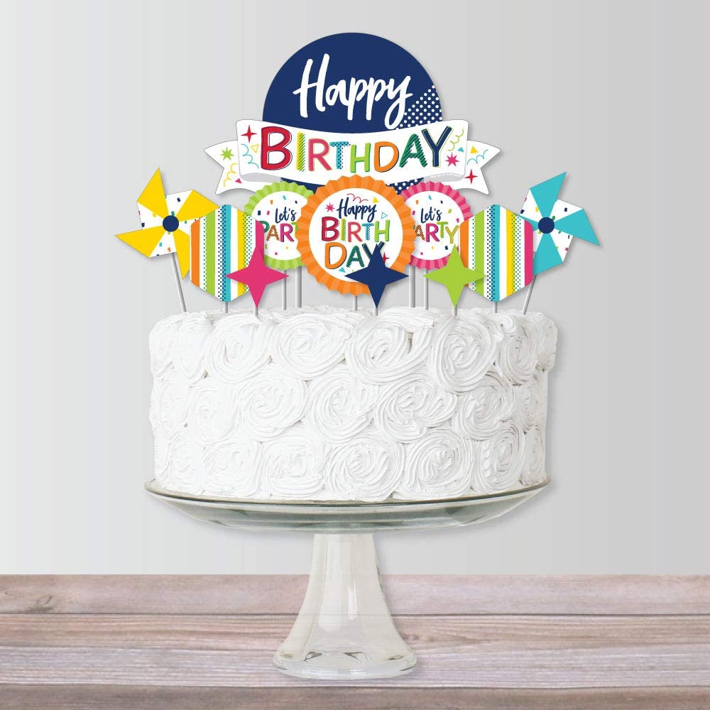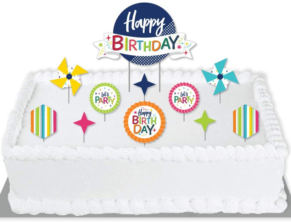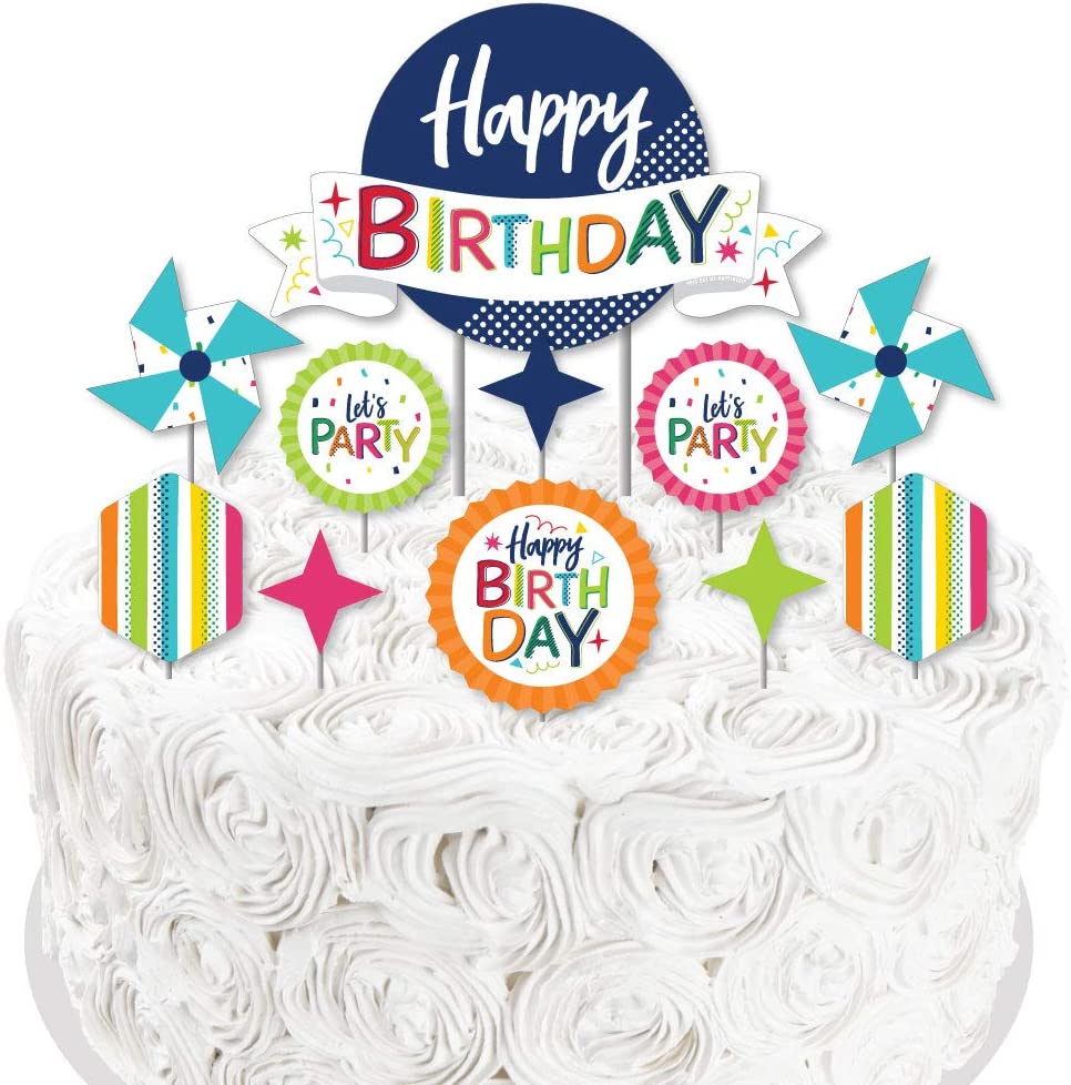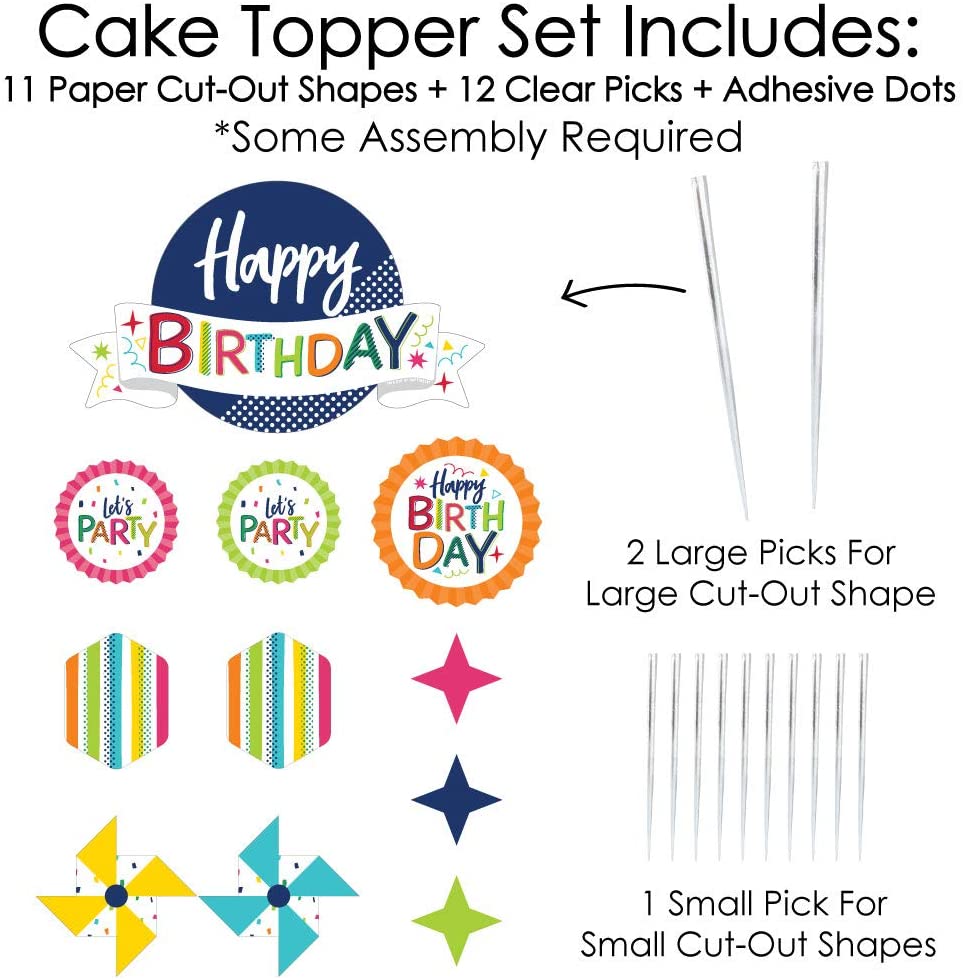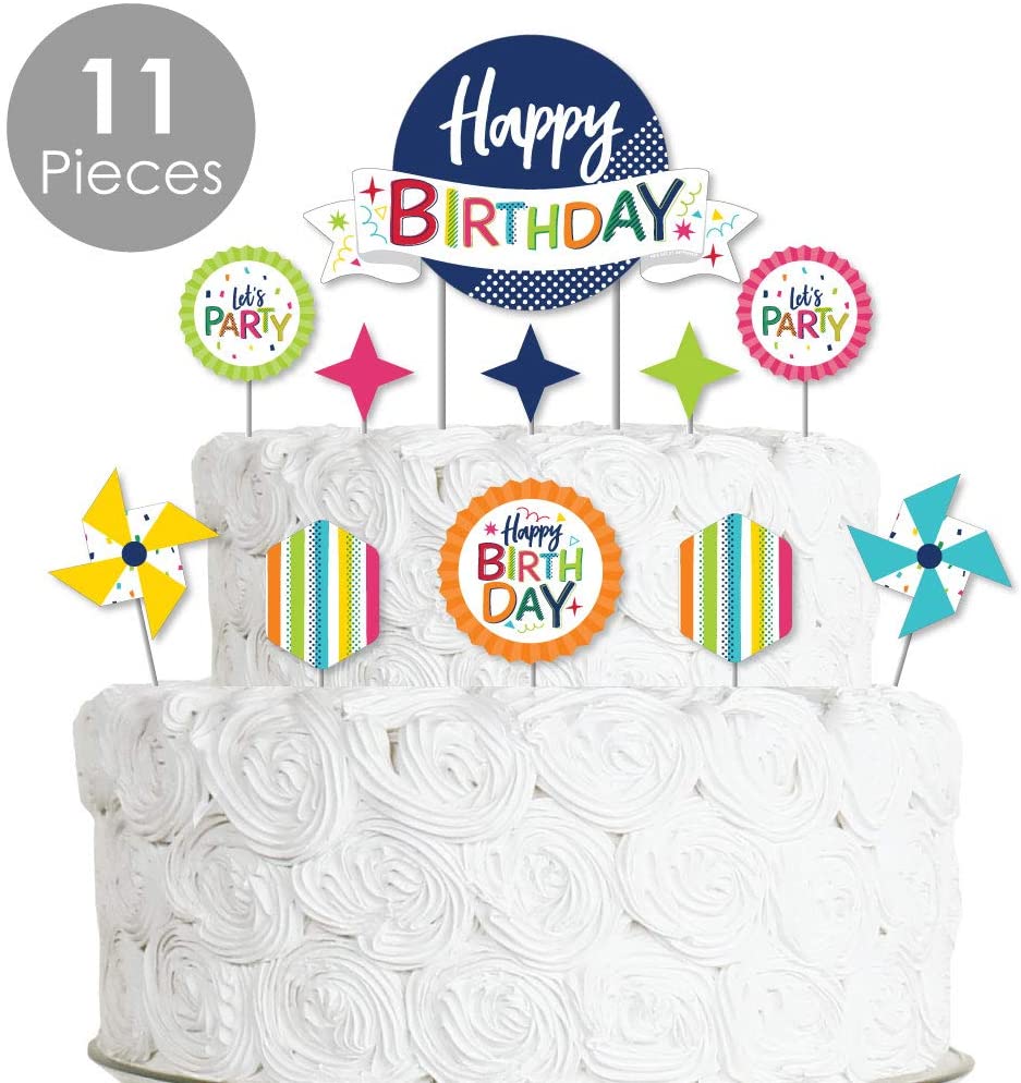 欢快的生日快乐 - 彩色生日派对蛋糕装饰套件 - 生日快乐蛋糕装饰套装 - 11 件