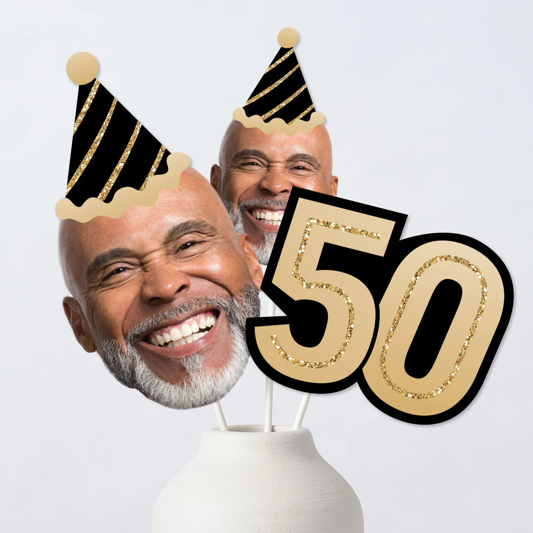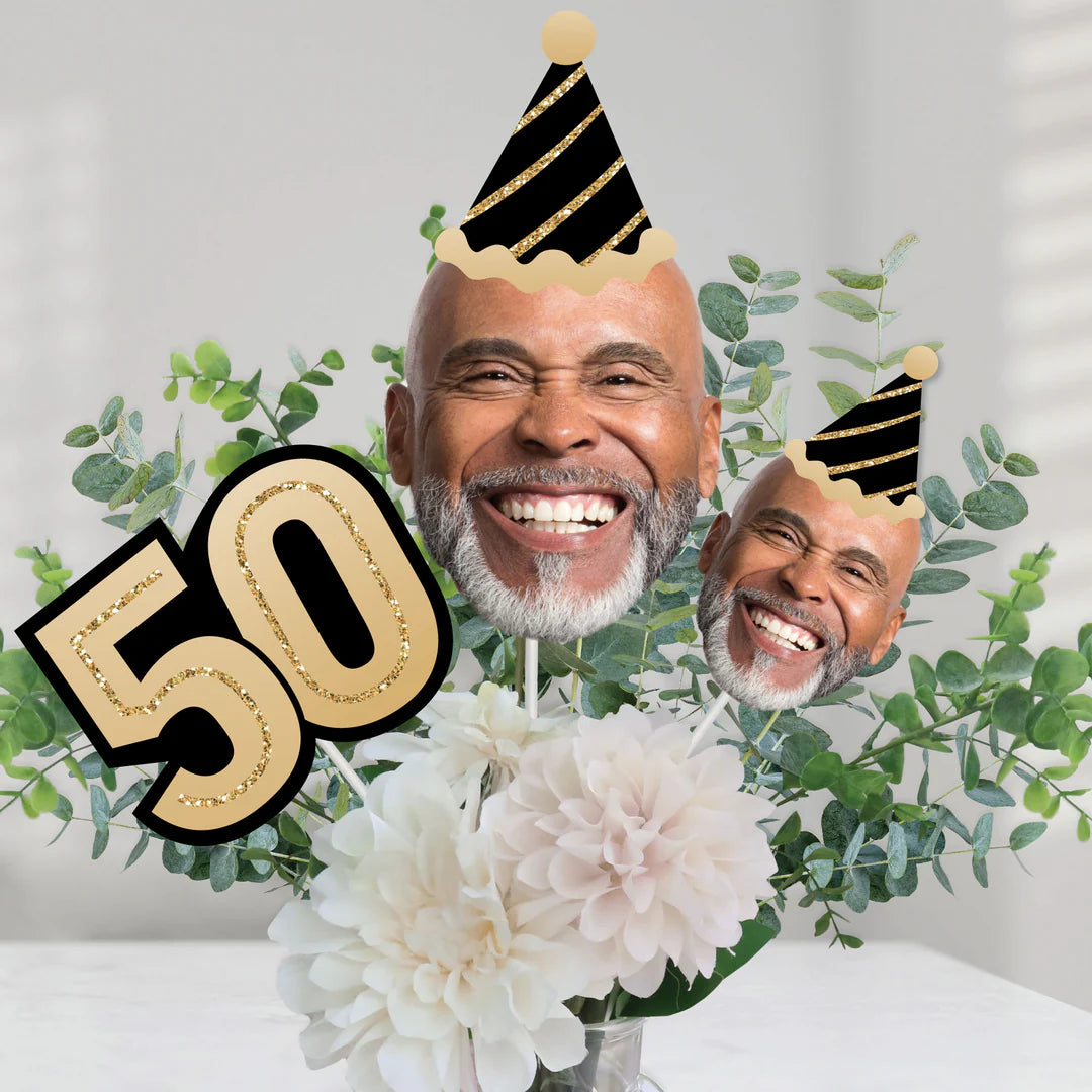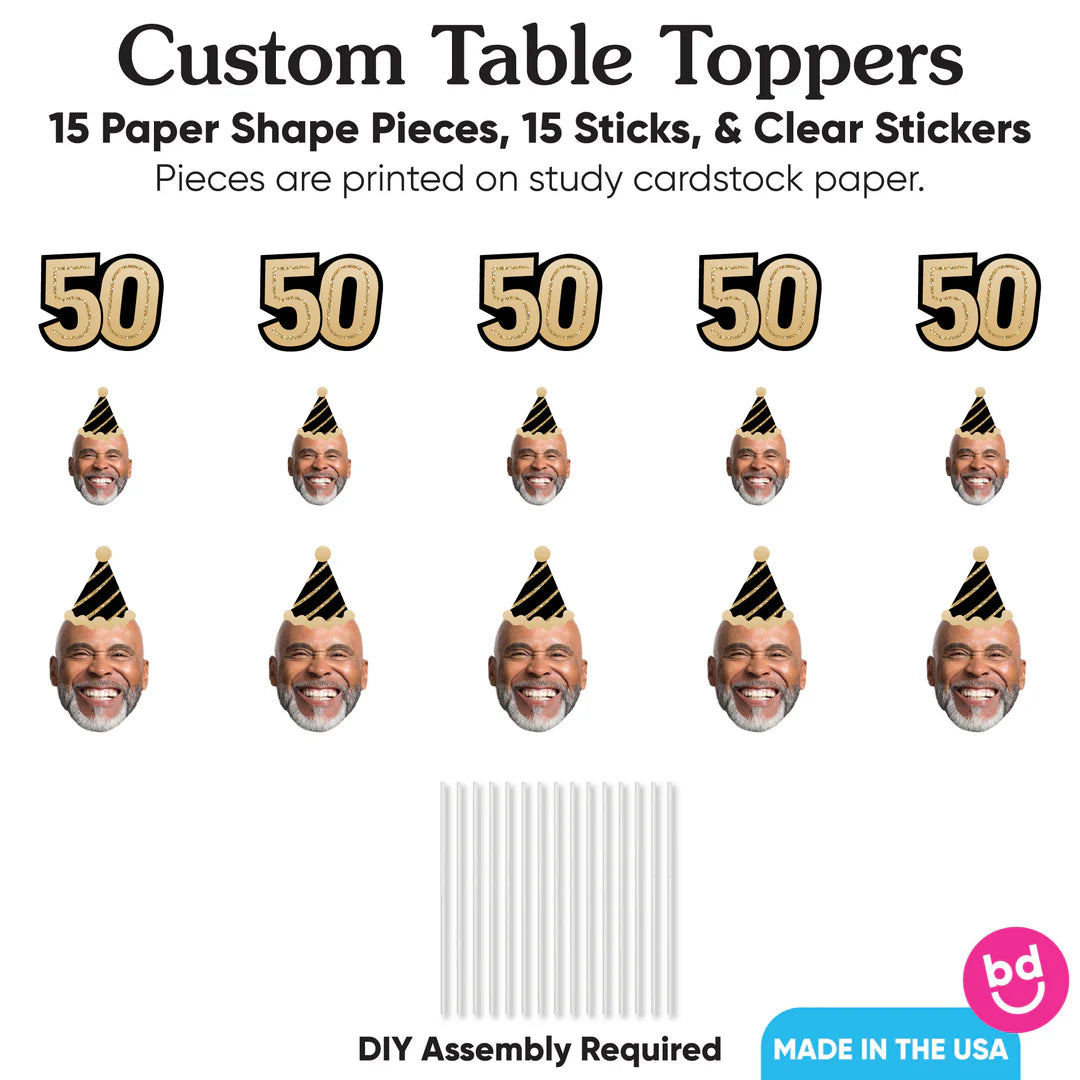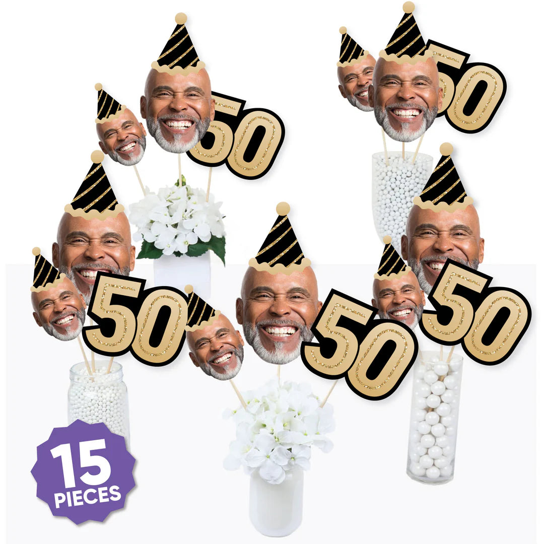 成人 50 岁生日 - 金色 - 生日派对中心装饰棒 - 桌面装饰 - 15 件套