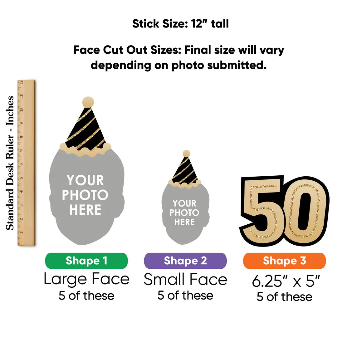 成人50岁生日 - 金色派对中心装饰棒,尺寸:五根50英寸宽 x 7.5英寸高桌面装饰棒;五根圆形桌面装饰棒,5.5英寸宽 x 5.5英寸高;以及五根生日快乐桌面装饰棒,7英寸宽 x 5.25英寸高。独特的设计和丰富的配件,使这款桌面装饰套装成为任何黑金主题派对的点睛之笔。
