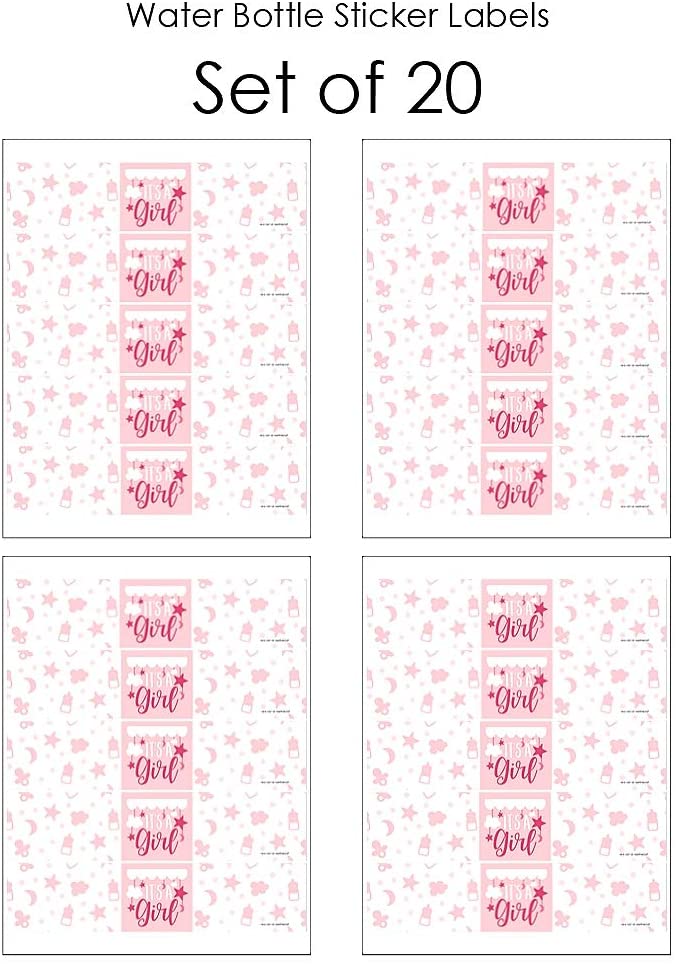 高品质派对用品:It's a Girl 水瓶标签采用专业印刷,印在带光泽涂层的贴纸上。防水设计,可用于冷藏饮料,但务必在冷藏前粘贴。将它们贴在女婴派对饮料吧台上,打造令人印象深刻、协调一致的展示效果。