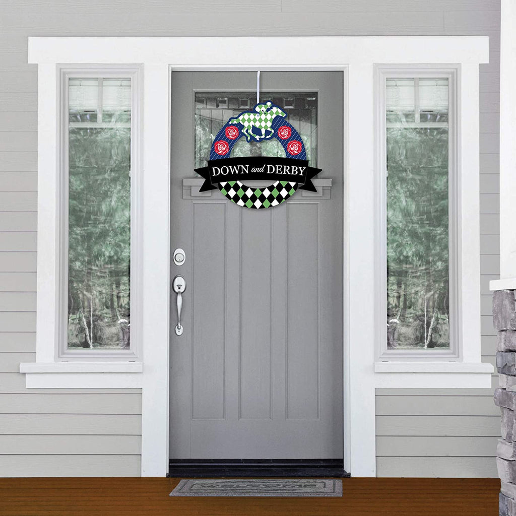 完美门饰:肯塔基赛马花环尺寸为 22.5 英寸宽 x 19 英寸高。这款装饰花环采用结实的 PVC 材质制成,单面印花,无论是居家还是办公,都能为任何前门增添亮色!防水防风雨,可悬挂于户外门上,可重复使用。
