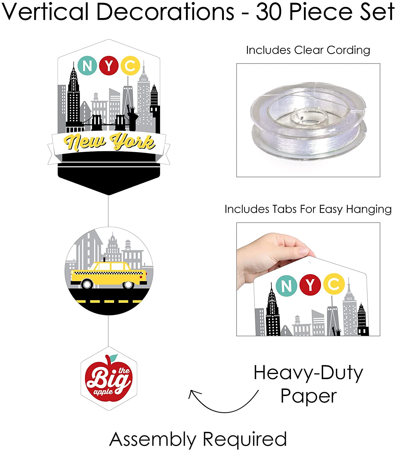 纽约市城市景观 - 纽约市派对 DIY 吊饰背景 - 悬挂式垂直装饰 - 30 件