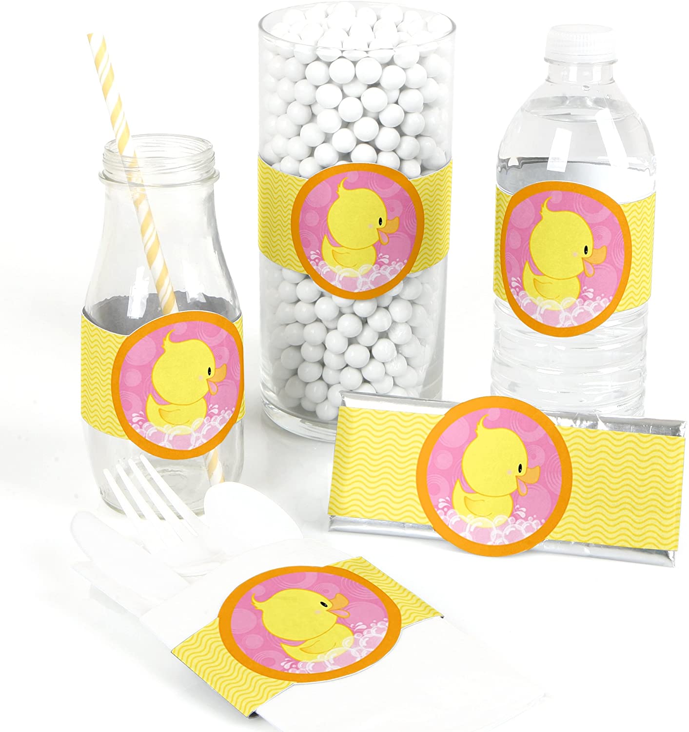 粉红小鸭 - DIY 派对用品 - 女婴洗礼或生日派对 DIY 包装礼品和装饰品 - 15 件套