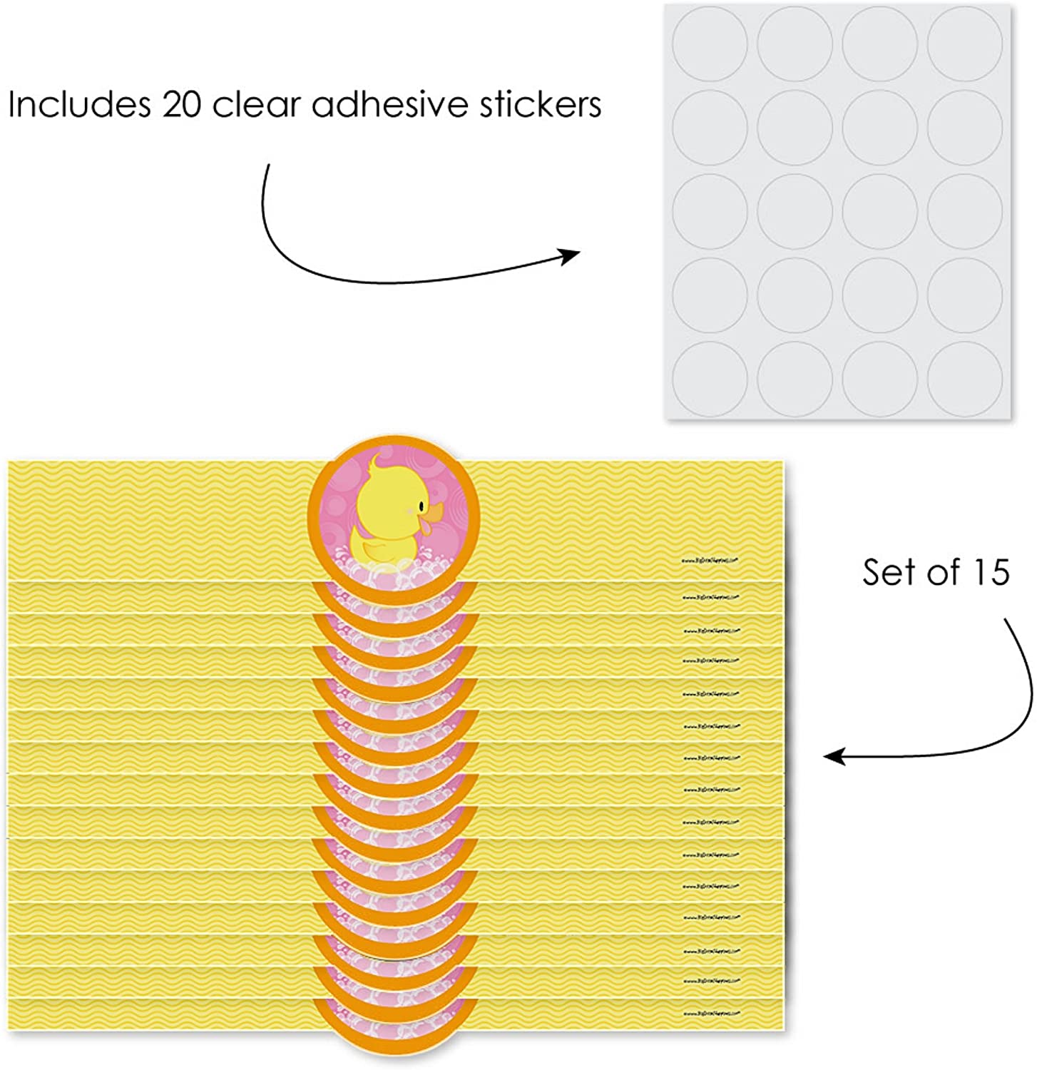 粉红小鸭DIY包装纸包含15张女孩橡皮鸭派对包装纸和20张透明贴纸。粉红小鸭DIY派对用品非常适合迎婴派对或生日派对。