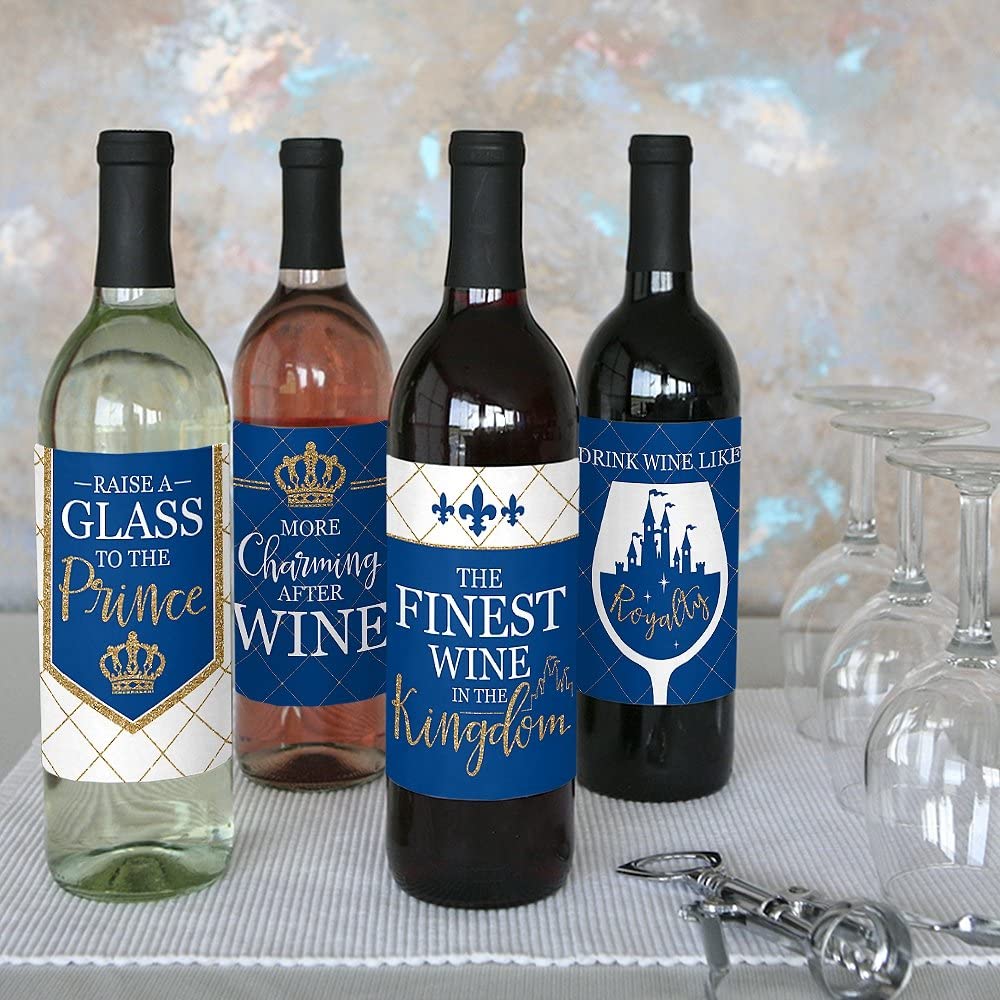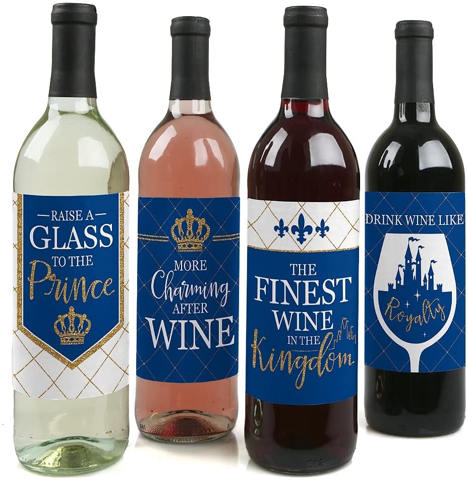 皇家白马王子 - 男女婴儿洗礼或生日派对装饰品 - 酒瓶标签贴纸 - 4 件套