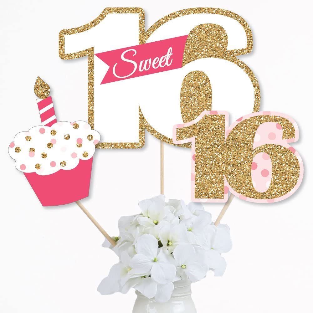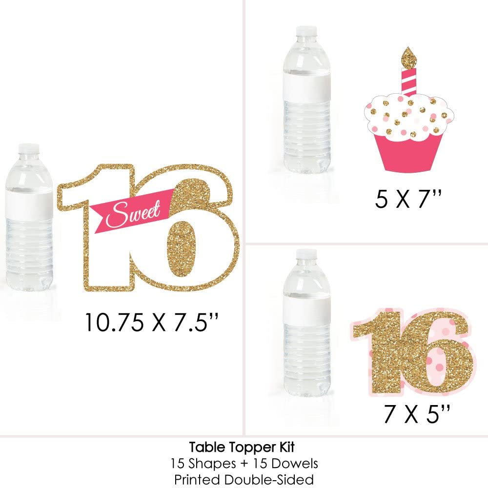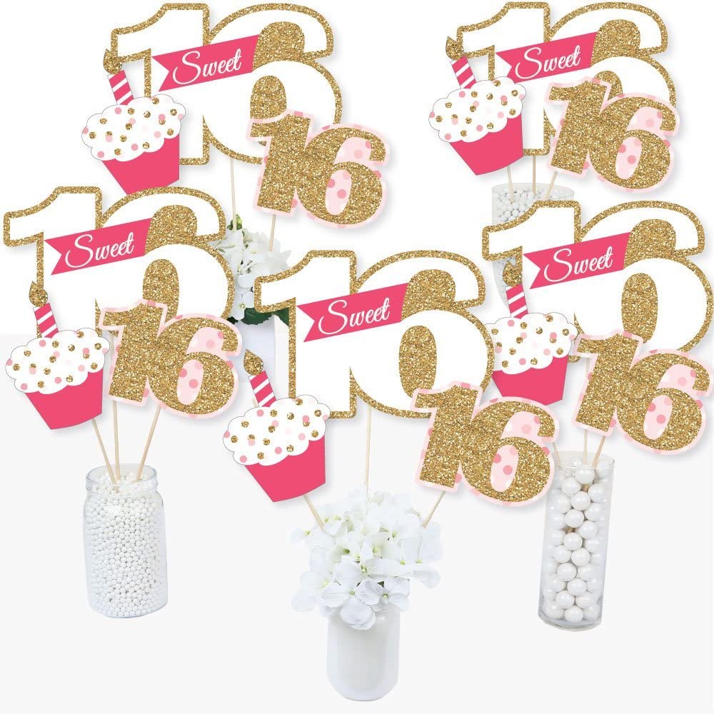 甜蜜 16 岁生日 - 16 岁生日派对中心装饰棒 - 桌面装饰 - 15 件套