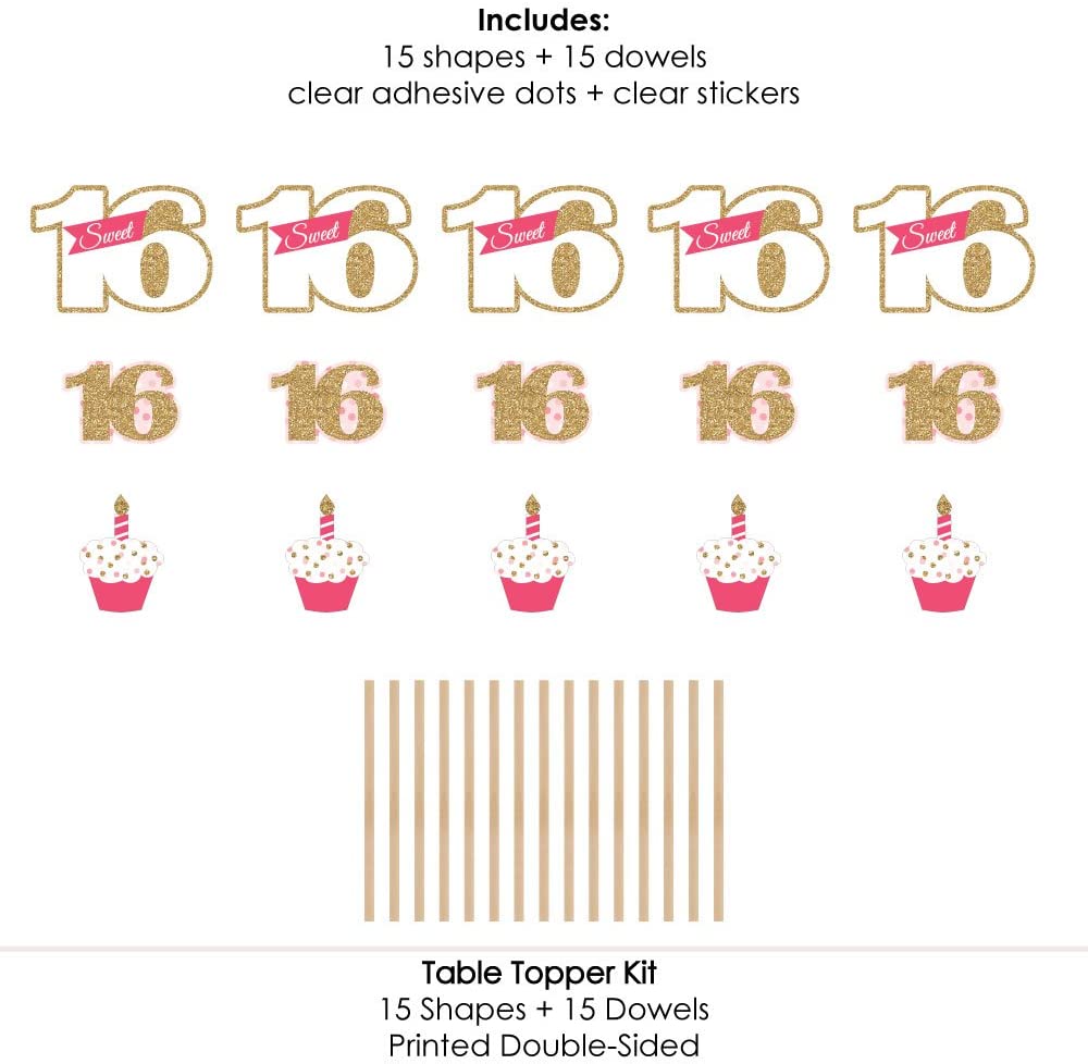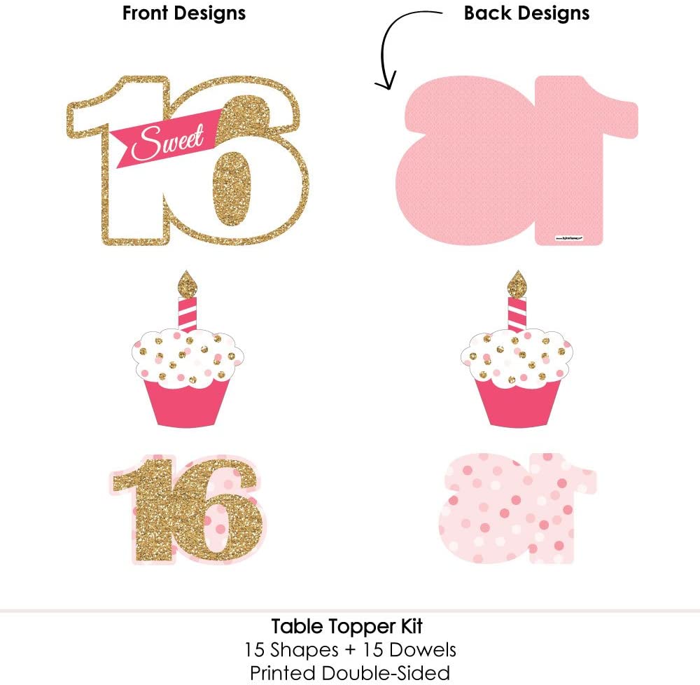 优质派对用品:甜蜜16岁——16岁生日派对桌面装饰采用专业印制的厚卡纸,光亮如照片。每件都经过单独检查,并用木钉和贴纸手工精心包装,方便组装。尽情发挥你的DIY派对创意!