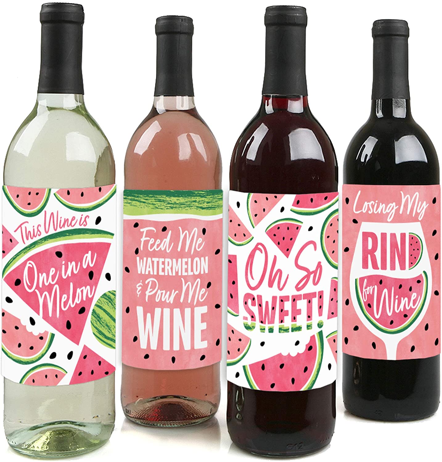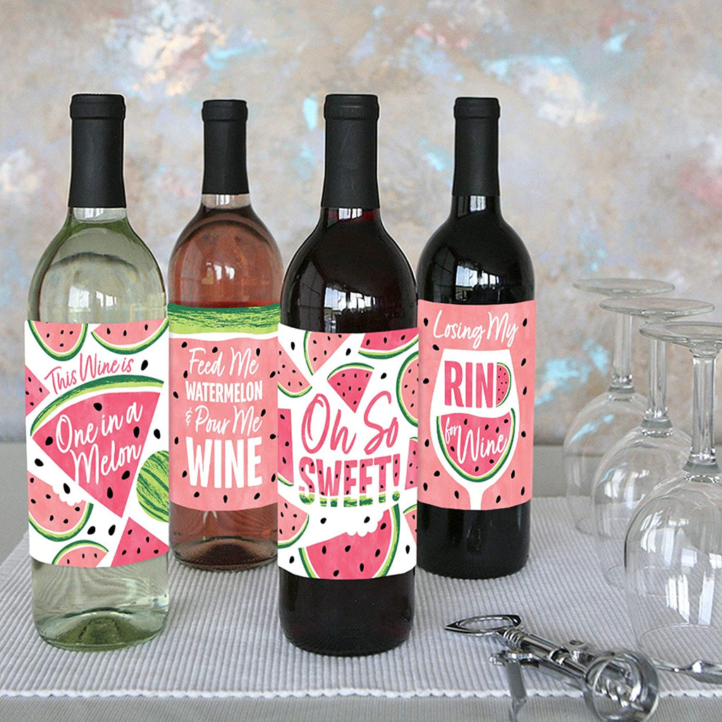 甜西瓜 - 男女水果派对装饰 - 酒瓶标签贴纸 - 4 件套