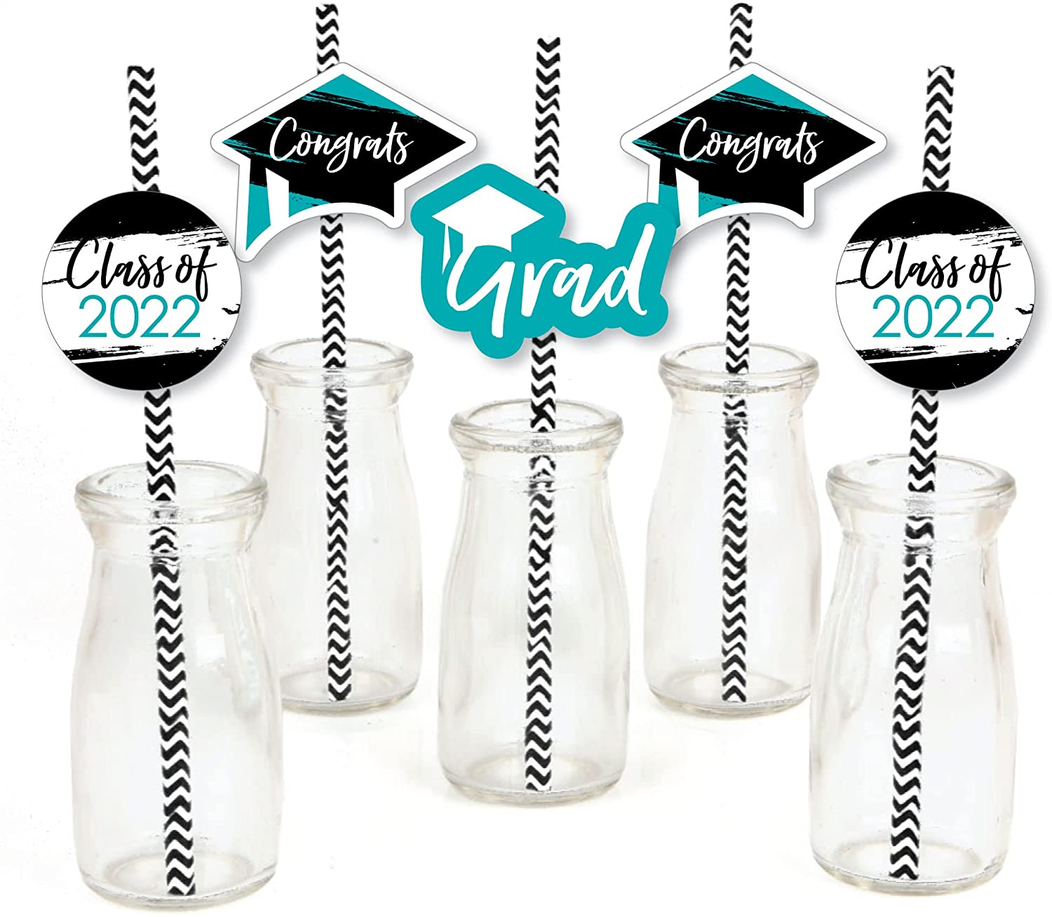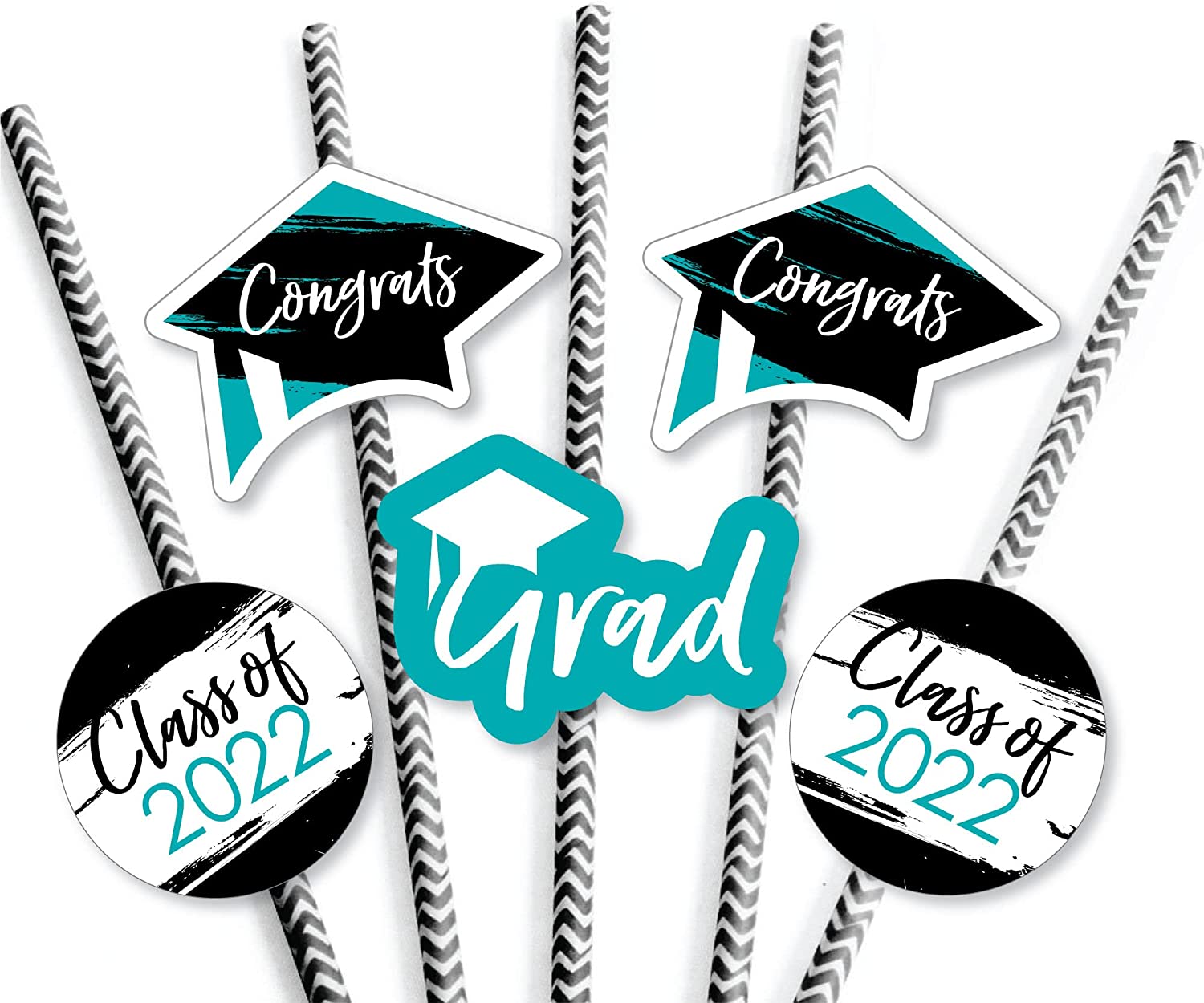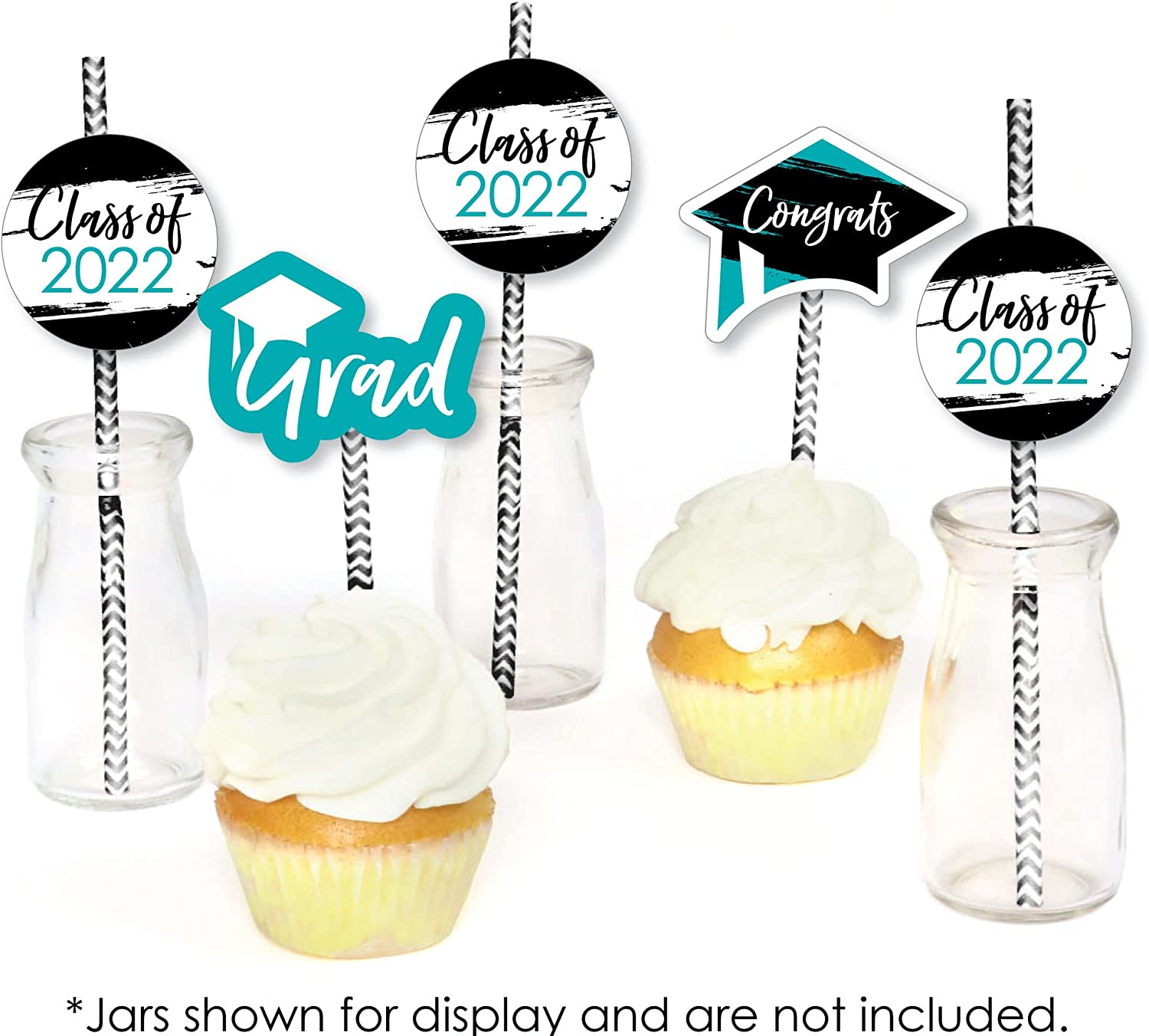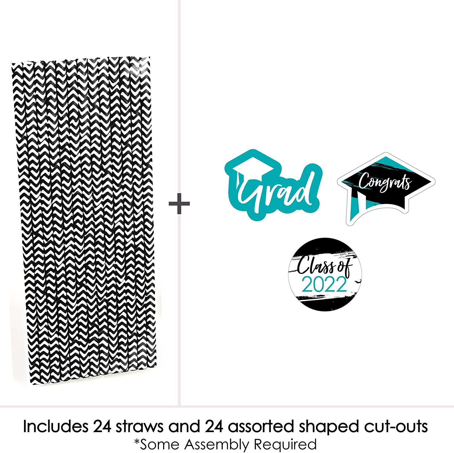 青色毕业 - 最好的尚未到来 - 纸质吸管装饰 - 绿松石色 2022 毕业派对条纹装饰吸管 - 24 件套 已缺货,一旦有货就会发货。