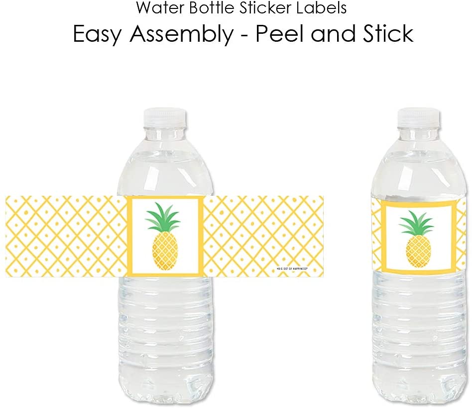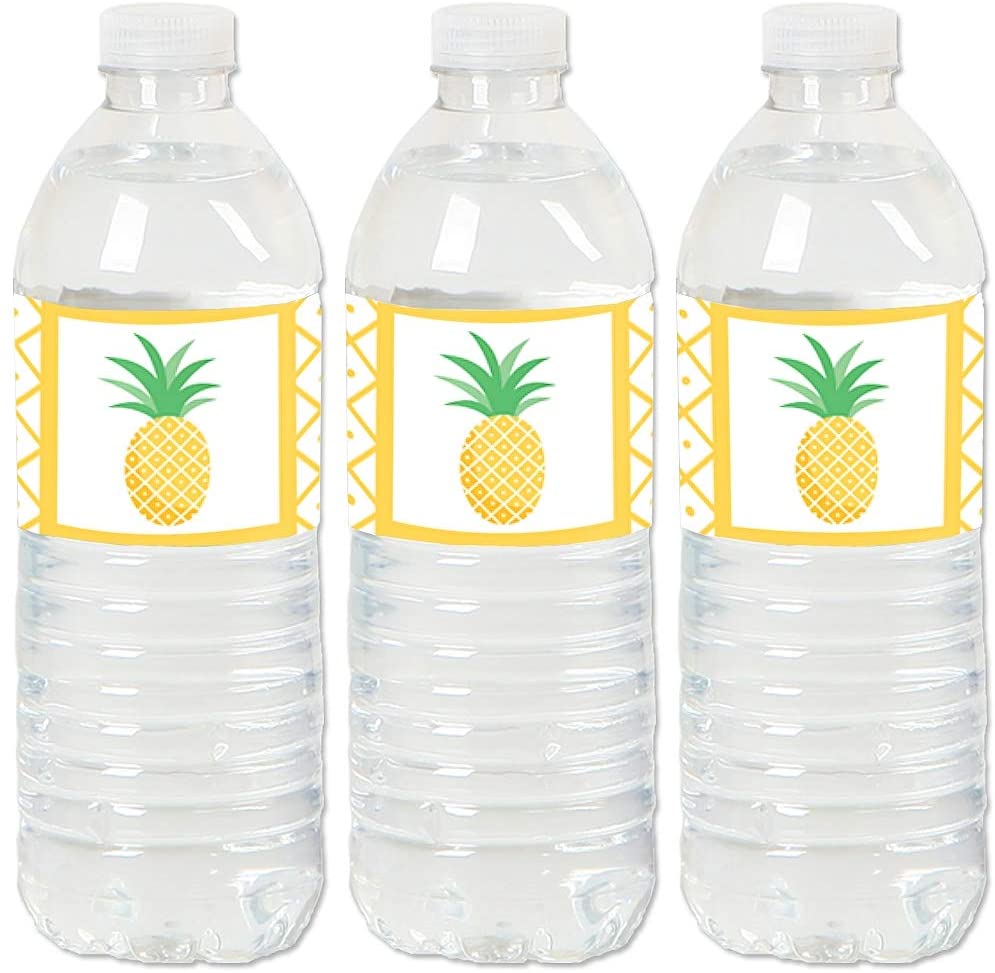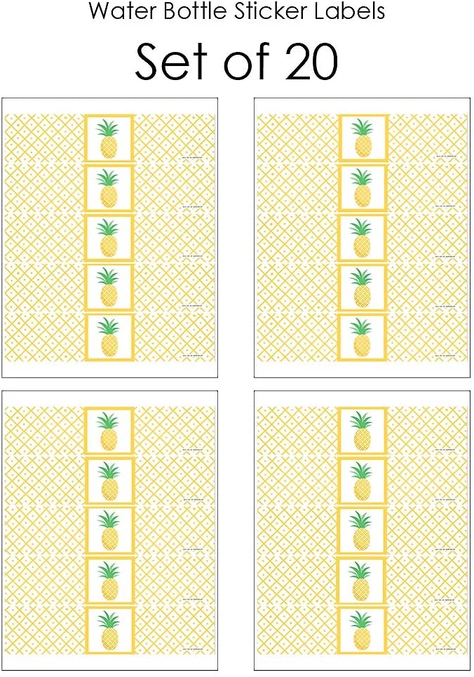 热带菠萝水瓶贴纸标签包含20个DIY水瓶标签。热带菠萝DIY派对用品非常适合快速装饰任何饮料瓶,打造符合你派对主题的派对风格。